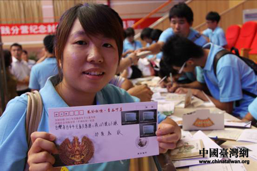 發(fā)行儀式上,平頂山市郵政局向臺灣大學(xué)生們贈送了紀(jì)念封和明信片。大學(xué)生們給遠(yuǎn)在臺灣的家人寫信送祝福、報(bào)平安。嘉義大學(xué)學(xué)生蘇于姍一邊在紀(jì)念封上寫著地址,一邊高興地說:“這個活動太有紀(jì)念意義了,想想今天我在平頂山寫信,向親人報(bào)平安,等我回到臺灣,信也該到了,多好呀!給家人兩個驚喜!