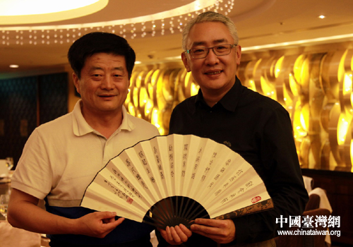 交流團團長董廣馳(左)與捷年建設呂臺年先生合影。(圖片來源:山東省臺辦)