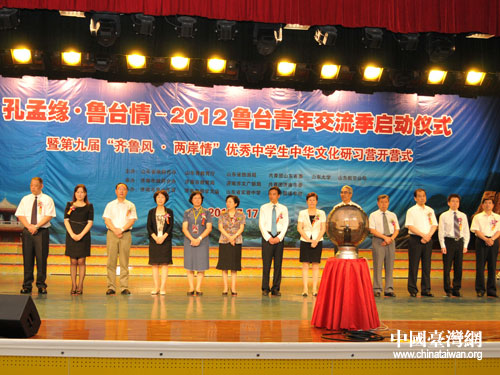 中國臺灣網7月17日濟南消息 7月17日上午,“孔孟緣·魯臺情—2012魯臺青年交流季啟動儀式暨第九屆“齊魯風·兩岸情”優(yōu)秀中學生中華文化研習營開營式”在濟南市青少年宮舉行。國臺辦交流局副局長嚴中洲、山東省臺辦主任張雪燕、濟南市委副書記雷杰出席活動,省教育廳、省旅游局、團省委、山東航空公司、山東大學、山東中醫(yī)藥大學和濟南市臺辦等10家主辦單位負責人參加了啟動儀式和開營式。