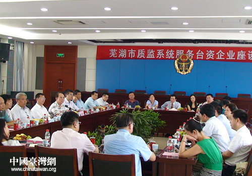 中國臺(tái)灣網(wǎng)7月19日蕪湖消息 日前,蕪湖市臺(tái)辦會(huì)同市質(zhì)監(jiān)局召開了“蕪湖市質(zhì)監(jiān)系統(tǒng)服務(wù)臺(tái)資企業(yè)座談會(huì)”,市臺(tái)商協(xié)會(huì)會(huì)長(zhǎng)陳鑒章率15家在蕪臺(tái)資企業(yè)董事長(zhǎng)、總經(jīng)理等20余人參加座談。