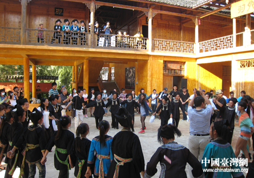 中國臺灣網7月19日三都消息 日前,臺胞青年千人夏令營的青年學生們來到三都族自治縣的水各村。在這里,青年學生們感受到了濃郁的水族風情的迎賓客的禮儀和方式。