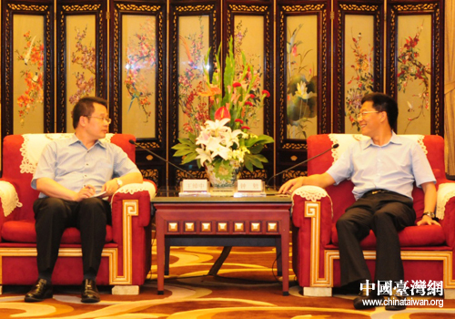四川省委常委、副省長(zhǎng)鐘勉會(huì)見率團(tuán)來川采訪的臺(tái)灣《旺報(bào)》總編輯王綽中一行。(圖片來源:四川省臺(tái)辦)