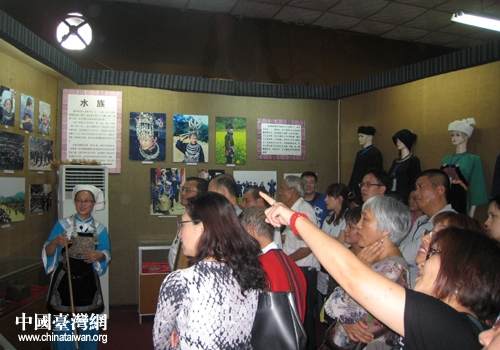 臺灣的少數(shù)民族團(tuán)員們參觀了三都水族博物館,觀看了水族的水書、服飾等民俗文化展覽,了解了當(dāng)今的水族同胞,寫水書、說水語、用水歷、著水衣、唱水歌、跳水舞,傳承著淳厚的水族風(fēng)俗習(xí)慣。被譽為象形文字“活化石”的水書,至今廣為使用。水族的端節(jié)、水書、馬尾繡被列為國家級首批非物質(zhì)文化遺產(chǎn)名錄。