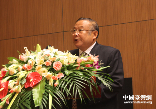 全國臺聯(lián)副會長、天津臺聯(lián)會長蔡世彥作主題發(fā)言。(圖片來源:天津市臺辦)