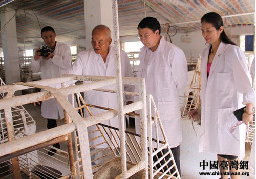 在開陽縣,調(diào)研組一行在縣委副書記覃昆,開陽縣政協(xié)副主席、縣委統(tǒng)戰(zhàn)部部長陳剛等陪同下考察了“國家級農(nóng)業(yè)產(chǎn)業(yè)化重點龍頭企業(yè)”——貴陽臺農(nóng)種養(yǎng)殖有限公司。貴陽臺協(xié)會副會長、臺農(nóng)公司董事長李昭宏對新任主任來筑調(diào)研首站選定臺農(nóng)企業(yè)非常感動,他認真向周素平一行介紹了飼料生產(chǎn)、銷售等生產(chǎn)經(jīng)營現(xiàn)狀和環(huán)保改造及廢料再利用情況。周素平主任邊聽邊問,除了參觀飼料自動輸送設(shè)備、500立方沼氣發(fā)電設(shè)備外,還不顧天氣炎熱,徑直走進養(yǎng)殖現(xiàn)場查看,他對企業(yè)注重開發(fā)新技術(shù)和注重環(huán)保的理念表示肯定,希望可以將豬場的壓嘴式自動飲水器、培養(yǎng)小豬的保溫毯等小發(fā)明為更多農(nóng)民所了解和共享。