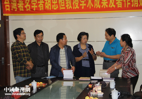 臺灣著名學(xué)者胡忠恒教授科研成果及著作捐贈儀式現(xiàn)場。(圖片來源:朝陽市臺辦)