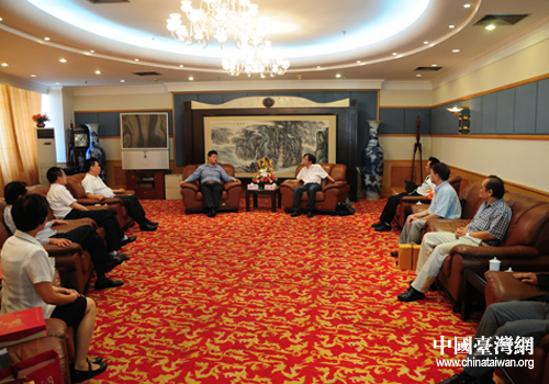 中國(guó)臺(tái)灣網(wǎng)9月17日漢中消息 日前,臺(tái)灣京都同仁堂生物科技股份有限公司總經(jīng)理?xiàng)钫耙恍衼?lái)漢考察中藥材與藥廠深加工項(xiàng)目。市委常委、常務(wù)副市長(zhǎng)魏建鋒會(huì)見(jiàn)了楊瞻一行,副市長(zhǎng)曹宏,市政府副秘書長(zhǎng)、市法制辦主任樊強(qiáng)參加會(huì)見(jiàn)。