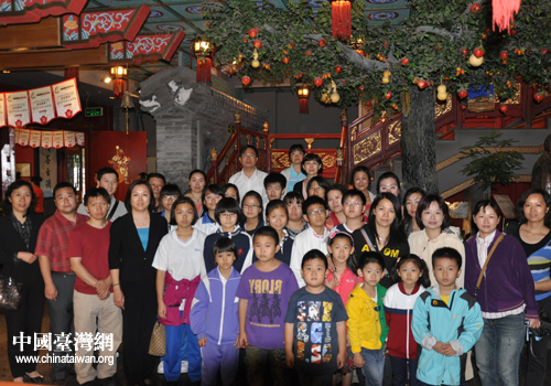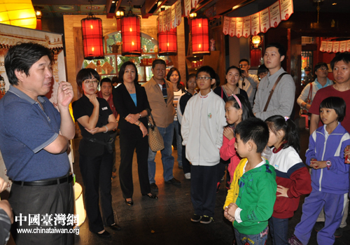慰問活動(dòng)在老舍茶館舉行,參加活動(dòng)的臺(tái)籍學(xué)生在老師和家長的陪同下,興高采烈的來到老舍茶館,在茶館辦公室主任安澤京的陪同下,進(jìn)行了參觀,了解了茶館從無到有,從小到大,從簡單的茶館到以茶會(huì)友,成為當(dāng)前聯(lián)系世界各地文化,特別是兩岸傳統(tǒng)文化重要紐帶的發(fā)展歷程。