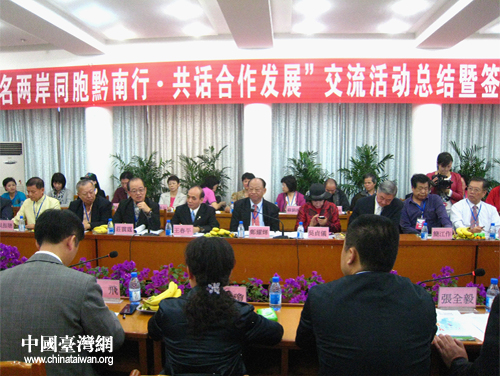 “百名兩岸同胞黔南行,共話合作發(fā)展”交流活動總結(jié)座談會暨臺商投資項(xiàng)目協(xié)議簽約儀式在惠水舉行。(黔南州臺辦 桂勇 攝)