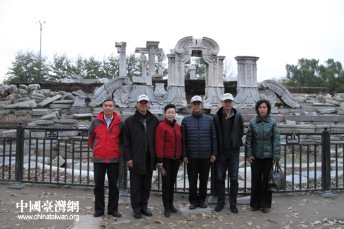 臺灣參訪團一行到海淀區(qū)圓明園遺址公園參觀考察。(圖片來源:北京市海淀區(qū)臺辦)