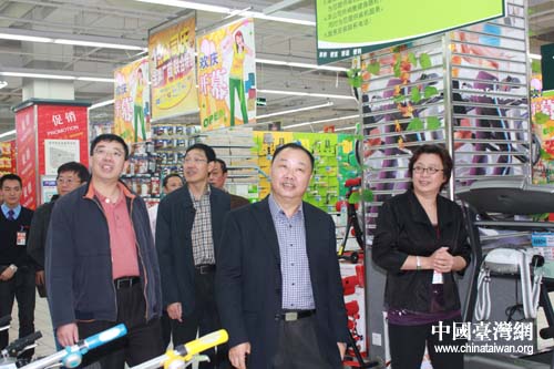 張世虎一行視察大潤(rùn)發(fā)大型購(gòu)物商場(chǎng)經(jīng)營(yíng)情況。(圖片來(lái)源:綿陽(yáng)市臺(tái)辦)