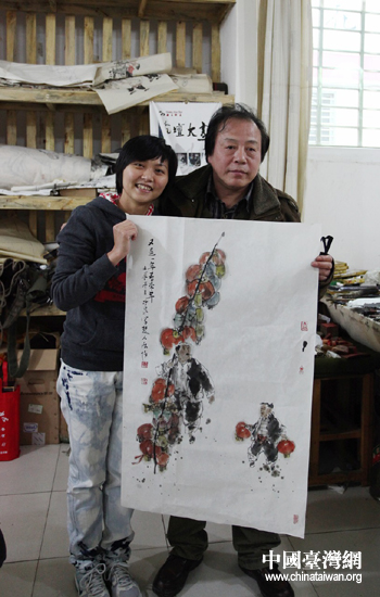 回鄉(xiāng)期間,汪蘇芳儀女士一行還特意拜會了她的老朋友——臨澧縣知名畫家覃仕泉先生。去年11月,汪蘇芳儀女士陪同她的婆婆汪老太太回鄉(xiāng)祭祖,曾與覃仕泉先生有過一面之緣,汪老太太還獲贈覃先生國畫作品《喜盈門》。對于這幅作品,汪老太太十分珍愛,回到臺灣后,頻頻向親友展示。汪蘇芳儀的大女兒是個國畫迷,看到《喜盈門》這幅作品后愛不釋手,便撒嬌向奶奶索要。一向疼愛孫女的汪老太太卻一反常態(tài)沒有答應,“這是覃大師送我的,誰也不送,我要將它掛在自己的房間里,看到這幅畫就像看到了家鄉(xiāng)的親人!甭犃送籼K芳儀女士的介紹,覃仕泉先生非常感動,當即潑墨揮毫,現(xiàn)場作畫《又是一年春來早》相贈其大女兒。得到覃先生的墨寶,汪蘇芳儀和她的兒女們十分高興,表示一定將其帶到臺灣好好珍藏,更希望覃先生能到臺灣去開個人畫展,把湖湘文化介紹到臺灣,讓更多的臺灣同胞了解我們的傳統(tǒng)文化。(中國臺灣網(wǎng)臨澧縣臺辦通訊員 伍玲)