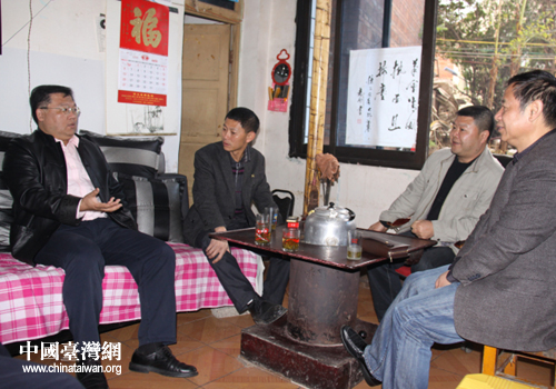 李德維先生(左一)與兩位堂兄(中)敘親情。(貴陽市臺(tái)辦 段小芬 攝)