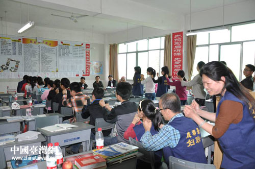 成都市臺商協(xié)會婦聯(lián)會與學(xué)生們互動游戲。(圖片來源:廣元市臺辦)