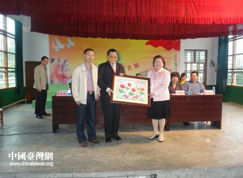 中國臺灣網4月3日蕉嶺消息 日前,廣東蕉嶺縣新鋪中心小學舉行了2012年度優(yōu)秀教師頒獎大會。在新鋪徐溪成長的旅臺慈善家鐘法剛先生及夫人陳阿美女士,蕉嶺縣外事僑務和臺灣工作局局長林曉紅等出席活動。