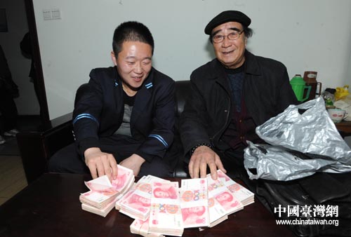 李程林和劉清海老人見(jiàn)面了,包里每捆1萬(wàn)元共10捆現(xiàn)金在110民警和中青出租汽車(chē)公司工作人員的見(jiàn)證下當(dāng)場(chǎng)交接。錢(qián)物交接完后,劉清海老人一直握著李程林的手表示感謝,兩人還互留了手機(jī)號(hào)碼。“你去臺(tái)灣玩吧,我接待你,領(lǐng)著你到處逛逛。”劉清海老人熱情地對(duì)李程林發(fā)出了邀請(qǐng)!按鬆斈挥每蜌,這都是我應(yīng)該做的,明天您去機(jī)場(chǎng)我還去送您。”在眾人的注視下,李程林顯得有些害羞。(中國(guó)臺(tái)灣網(wǎng)、青島市臺(tái)辦聯(lián)合報(bào)道)