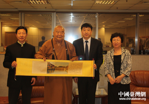 考察團(tuán)一行拜會星云大師并合影留念。(圖片來源:葫蘆島臺辦)