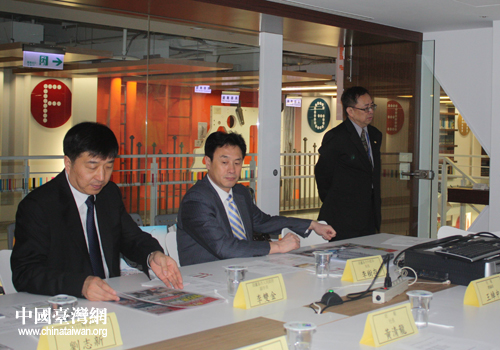 在臺期間,考察團(tuán)與島內(nèi)工商界人士廣泛接觸,積極推進(jìn)項目落實。李雙金率團(tuán)先后拜會了臺灣中華金融業(yè)務(wù)研究發(fā)展協(xié)會理事長王榮周、臺灣弘馳股份有限公司董事長蘇丁才,考察了臺灣天下企業(yè)機構(gòu)、桃園縣紅柿子食品有限公司、中時集團(tuán)旺報總部、南投縣寶島時代村文化商城等企業(yè),并達(dá)成相關(guān)合作意向。