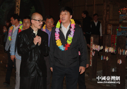 考察團(tuán)一行考察南投縣寶島時代村文化商城。(圖片來源:葫蘆島臺辦)