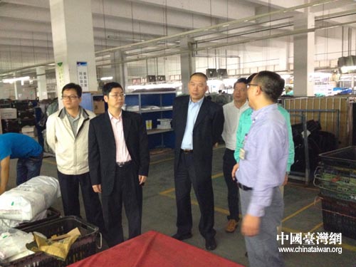 廣東省臺辦副主任陳林佐到中山市易惠日用制品有限公司調(diào)研。(圖片來源:中山市臺辦)