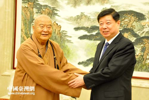 姜異康與星云大師親切握手。(圖片來(lái)源:山東省臺(tái)辦)