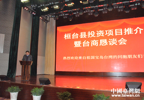 桓臺(tái)縣舉行投資項(xiàng)目推介會(huì)暨臺(tái)商懇談會(huì),副縣長(zhǎng)尹鵬主持會(huì)議。(圖片來源:桓臺(tái)縣臺(tái)辦)