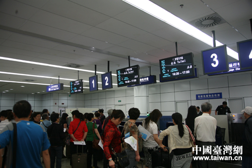 搭乘遠(yuǎn)航飛赴臺灣的旅客辦理登記手續(xù)。(圖片來源:寧夏臺辦)