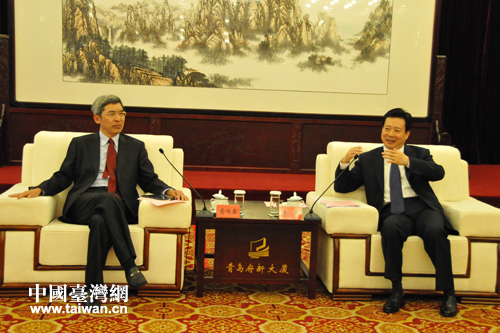青島市委書記李群會見臺灣中評社采訪團(tuán)。(圖片來源:青島市臺辦)