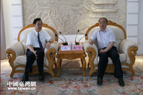 甘肅省副省長(zhǎng)張廣智會(huì)見臺(tái)灣慈濟(jì)基金會(huì)王端正。(圖片來源:甘肅省臺(tái)辦)