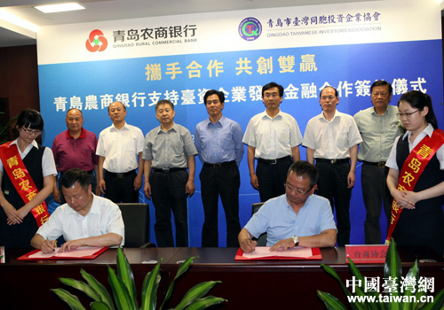 中國臺(tái)灣網(wǎng)6月25日青島消息 為貫徹山東省政府辦公廳《關(guān)于支持臺(tái)資企業(yè)發(fā)展擴(kuò)大魯臺(tái)經(jīng)貿(mào)合作的意見》(魯政辦發(fā)〔2012〕64號(hào)文件)和青島市政府辦公廳《關(guān)于支持臺(tái)資企業(yè)發(fā)展擴(kuò)大青臺(tái)經(jīng)貿(mào)合作的意見》(青政辦發(fā)〔2013〕18號(hào)文件)精神,加強(qiáng)對(duì)青島市臺(tái)資企業(yè)的金融服務(wù),支持在青臺(tái)資企業(yè)發(fā)展,經(jīng)青島市臺(tái)辦積極協(xié)調(diào),青島農(nóng)商銀行與青島市臺(tái)胞投資企業(yè)協(xié)會(huì)簽訂了《青島農(nóng)商銀行支持臺(tái)資企業(yè)發(fā)展金融合作協(xié)議》。