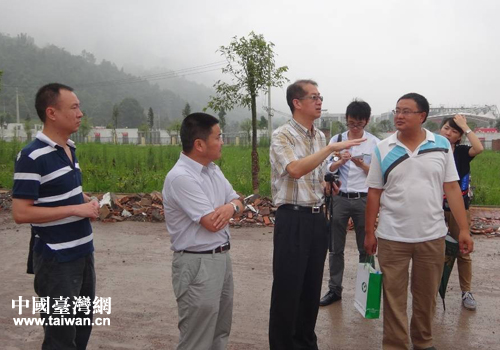 臺(tái)灣頂新集體團(tuán)公益基金會(huì)理事長滕鴻年(左三)一行在“4.20”地震災(zāi)區(qū)開展災(zāi)后援建考察。(圖片來源:雅安市臺(tái)辦)