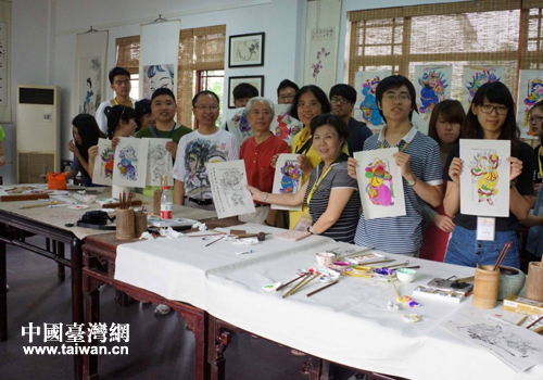 臺(tái)灣大學(xué)生展示自己親手繪制的年畫。(圖片來(lái)源:德陽(yáng)市臺(tái)辦)