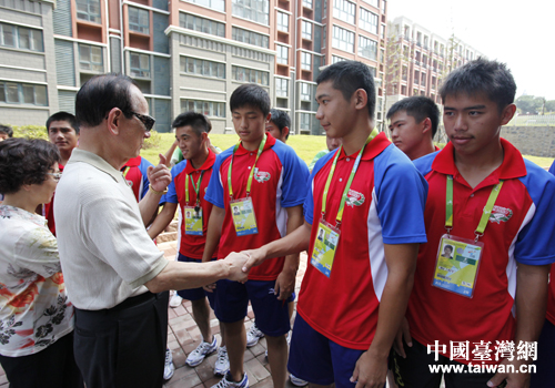 8月16日上午,中國國民黨副主席林豐正一行前往位于南京浦口的亞青村,看望參加第二屆亞洲青年運動會的中華臺北體育代表團,勉勵參賽選手取得好成績。圖片來源:南京市臺辦