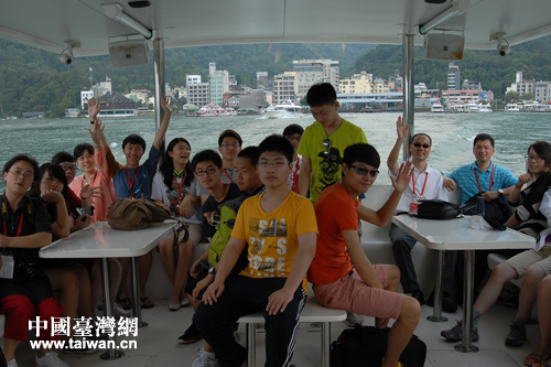 來(lái)到碧波澄澈的日月潭,已是傍晚時(shí)分。同學(xué)們乘坐游船飽覽湖光山色,登上為紀(jì)念玄奘大師所建的玄光寺,嘗嘗口味獨(dú)特的阿婆茶葉蛋。美麗的日月潭伴隨那美好的臺(tái)灣少數(shù)民族邵族的傳說(shuō)留在了每個(gè)人的心底。(中國(guó)臺(tái)灣網(wǎng)上海市臺(tái)聯(lián)通訊員 王茜)