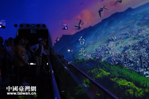 上海中學(xué)生在臺(tái)灣館內(nèi)觀賞全天域球幕電影。(圖片來(lái)源:上海市臺(tái)聯(lián))