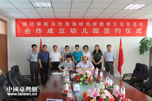 中國(guó)臺(tái)灣網(wǎng)8月27日濰坊消息 8月27日,濰坊學(xué)院與臺(tái)灣海峽兩岸教育交流促進(jìn)會(huì)就合作成立幼兒園正式簽約。臺(tái)灣海峽兩岸教育交流促進(jìn)會(huì)將在濰坊學(xué)院濰坊幼教特教師范學(xué)校校區(qū)投資建設(shè)幼兒園項(xiàng)目,該幼兒園將采用美國(guó)“芝麻街”教育模式和臺(tái)灣先進(jìn)的教育理念,配套以符合幼兒智商、情商、品德、體能、藝術(shù)素養(yǎng)全面發(fā)展的高端設(shè)施。(中國(guó)臺(tái)灣網(wǎng)、濰坊市臺(tái)辦聯(lián)合報(bào)道)