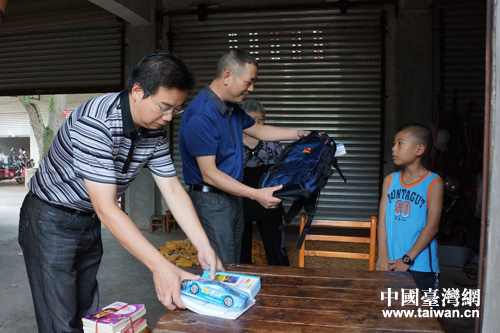 中國(guó)臺(tái)灣網(wǎng)8月29日德陽(yáng)消息 8月27日,新學(xué)期即將開(kāi)始,德陽(yáng)市臺(tái)辦主任林永成一行來(lái)到聯(lián)系幫扶村——旌陽(yáng)區(qū)和新鎮(zhèn)長(zhǎng)壽村看望慰問(wèn)留守兒童,向小朋友們送去了書(shū)包、學(xué)習(xí)用品、輔導(dǎo)書(shū)籍、課外讀本和勵(lì)志書(shū)本等。
