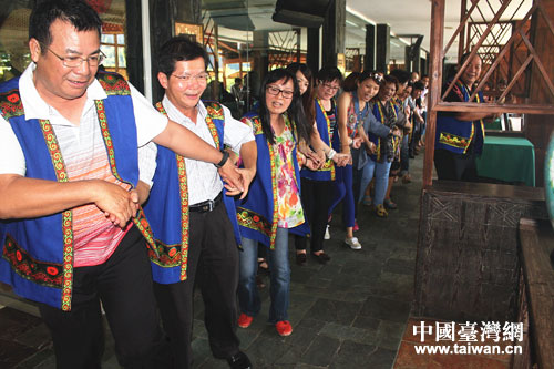 詠歌之不足,不知手之舞之足之蹈之也。半個(gè)小時(shí)的民歌比賽,讓兩岸同胞激情萬丈,唱著唱著,他們干脆手牽起手,連成了近20米長的長龍,邊唱邊跳起舞來: “你的家鄉(xiāng)在娜魯灣,我的家鄉(xiāng)在娜魯灣。從前的時(shí)候是一家人,現(xiàn)在還是一家人,一家人……”在臺灣歌曲《我們都是一家人》中,兩岸同胞依依不舍地互相揮手道別,期待著下一次相聚。 (中國臺灣網(wǎng)大新縣通訊員覃志婉 黃德民)