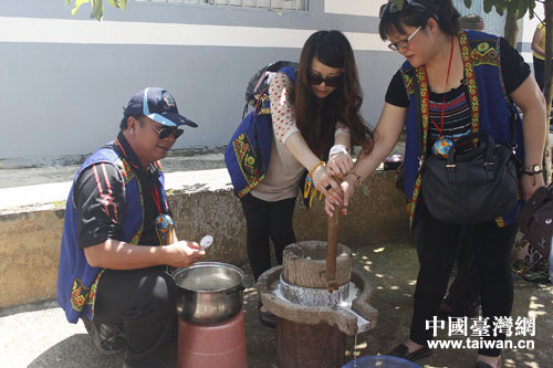 中國臺灣網(wǎng)8月30日大新消息 8月27日上午,大新縣雷平鎮(zhèn)新立村霞山屯的村民沉浸在一片歡樂的氣氛中,當(dāng)天來自臺灣花蓮縣卓溪鄉(xiāng)的17名臺胞與村民們一起開展磨米漿、舂糍粑、民歌比賽等民俗文化交流活動(dòng),演繹了一場濃濃“貝儂”的“兩岸一家情”。