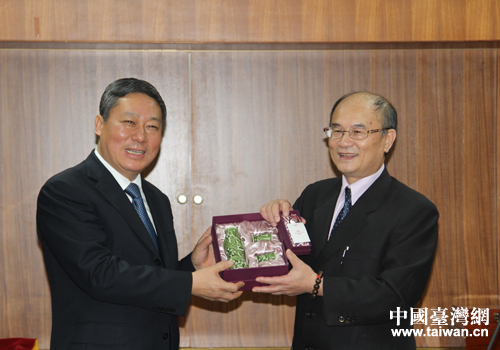 雙方互贈(zèng)禮物。(圖片來(lái)源:棗莊市臺(tái)辦)