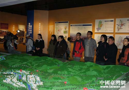臺(tái)灣中時(shí)媒體集團(tuán)采訪組一行在雅安采訪拍攝“4.20”地震災(zāi)后重建規(guī)劃展。(圖片來源:四川省臺(tái)辦)