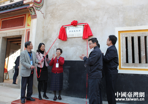 全國臺聯(lián)、廣東省臺聯(lián)、蕉嶺縣政府有關(guān)領(lǐng)導(dǎo)及臺灣抗日志士親屬協(xié)進會成員為羅福星故居被評為“廣東省文物保護單位”舉行掛牌儀式。(圖片來源:梅州市臺辦)