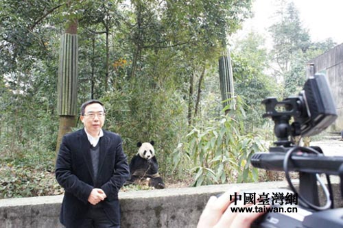 中國臺灣網(wǎng)12月12日雅安消息 12月11日,臺灣中天電視臺《開放·新中國——秀芳點(diǎn)題》節(jié)目組一行赴雅安碧峰峽大熊貓基地開展專題采訪拍攝,并專訪了享有“熊貓爸爸”美譽(yù)的中國保護(hù)大熊貓研究中心主任、四川臥龍國家級自然保護(hù)區(qū)管理局局長張和民。