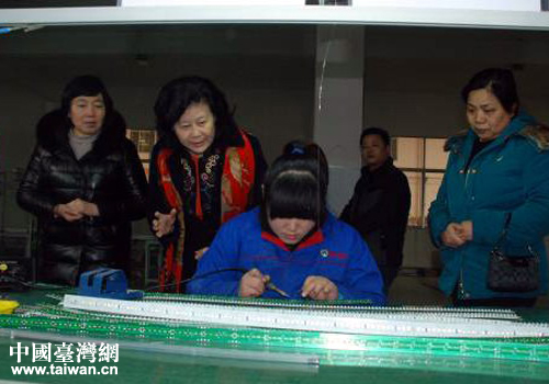 張雪燕一行在臺資企業(yè)濰坊益和電器有限公司考察。(圖片來源:山東省臺辦)
