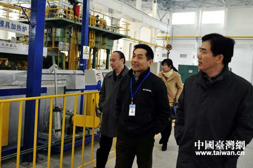 1月14日,青島市委副秘書長(zhǎng)、市臺(tái)辦主任田云南在膠州富士康科技集團(tuán)青島海源合金新材料有限公司走訪。(圖片來源:山東省臺(tái)辦)