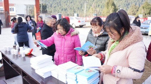 長壽村村民翻閱惠農(nóng)政策、農(nóng)業(yè)科普宣傳資料