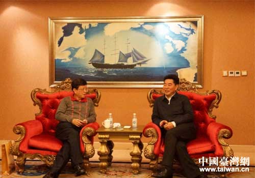 四川省人大副主任、德陽(yáng)市委書(shū)記李向志(右)會(huì)見(jiàn)臺(tái)灣海峽交流基金會(huì)顧問(wèn)江碩平(左)。(圖片來(lái)源:德陽(yáng)市臺(tái)辦)