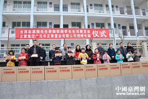 中國臺灣網(wǎng)3月17日廣元消息 廣元市臺辦在踐行黨的群眾路線教育實(shí)踐活動(dòng)中,組織開展下基層送愛心、送服務(wù),為朝天區(qū)西北鄉(xiāng)小學(xué)、花石鄉(xiāng)小學(xué)、青川縣茶壩鄉(xiāng)九年制學(xué)校、劍閣縣龍?jiān)存?zhèn)小學(xué)和旺蒼縣福慶鄉(xiāng)小學(xué)的60名貧困學(xué)生送上了臺商彭蔭剛先生資助的3萬元生活費(fèi),協(xié)助正黃集團(tuán)廣元市正黃置業(yè)有限公司向朝天區(qū)青林鄉(xiāng)小學(xué)等4所學(xué)校捐贈(zèng)了30臺教學(xué)電腦。(中國臺灣網(wǎng)廣元市臺辦通訊員 劉彥軍)