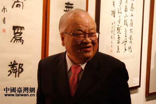 臺(tái)灣中山學(xué)術(shù)文化基金會(huì)董事長(zhǎng)許水德參觀了海峽兩岸名家書(shū)畫(huà)展。(中國(guó)臺(tái)灣網(wǎng) 雍紫薇 攝)
