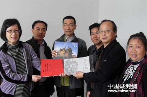 汪澤智向何元吉、何琇君贈送了歙縣畫冊、徽州剪紙等。(圖片來源:歙縣臺辦)